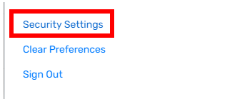 Or click on your name and select ‘Security Settings’ at the bottom of the menu.