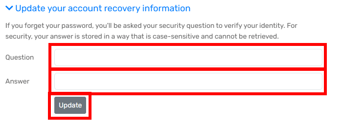 Set a security question and answer