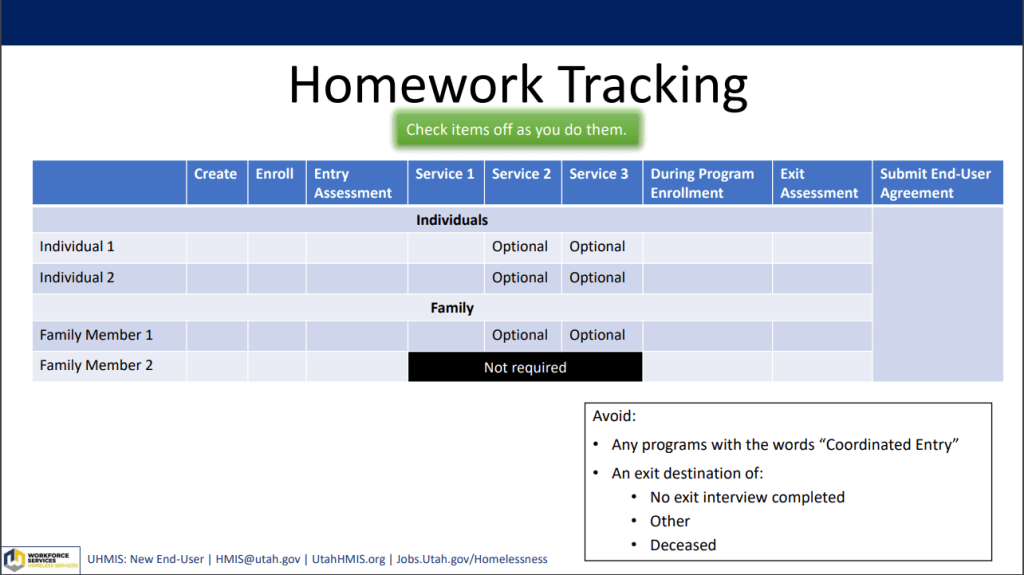 - Note: Any programs with “Coordinated Entry” are not acceptable for homework enrollments.